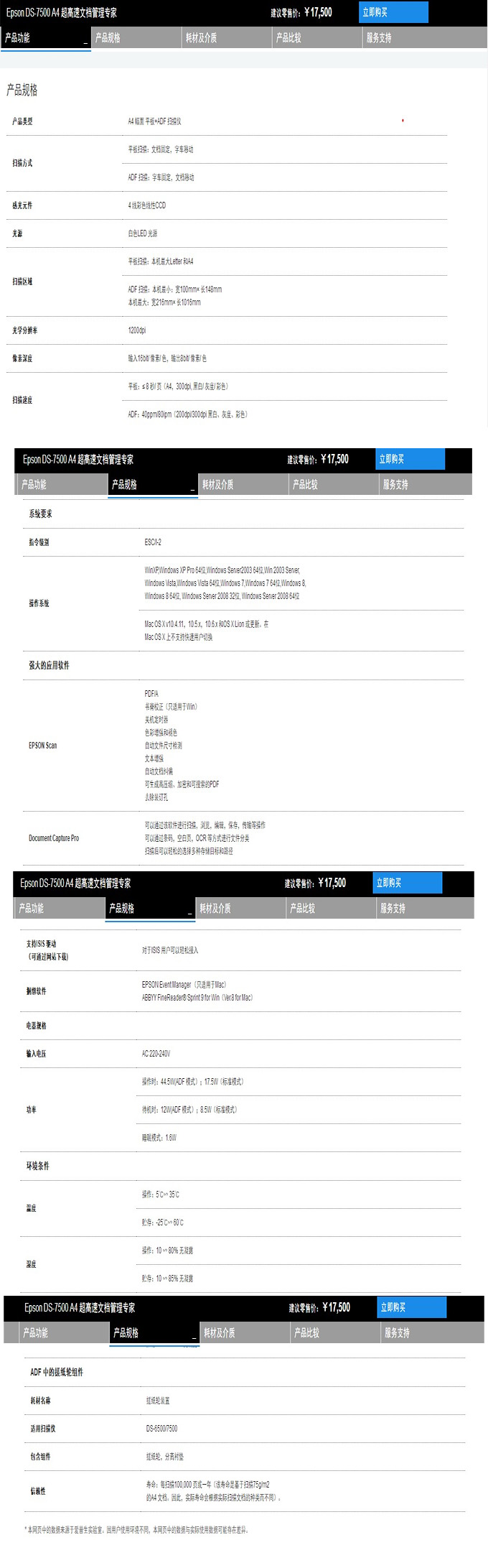 【爱普生 DS-7500产品参数】