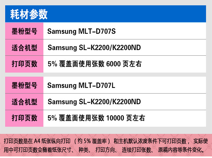 三星/Samsung 707L墨粉 大容量 黑色 适用(K2200 2200ND)