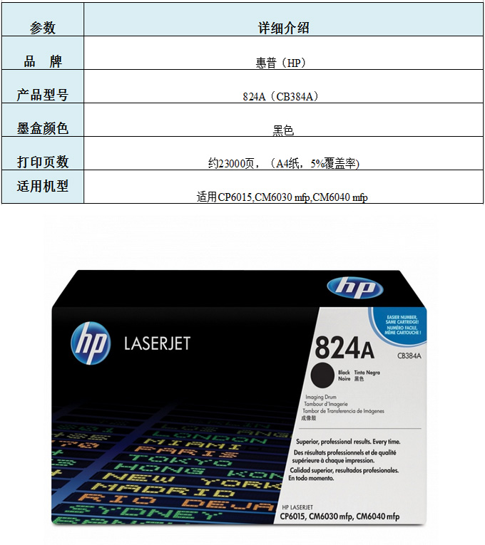 惠普/HP CB384A 黑色硒鼓 黑色 适用CP6015X/CM6030/CM6040打印机