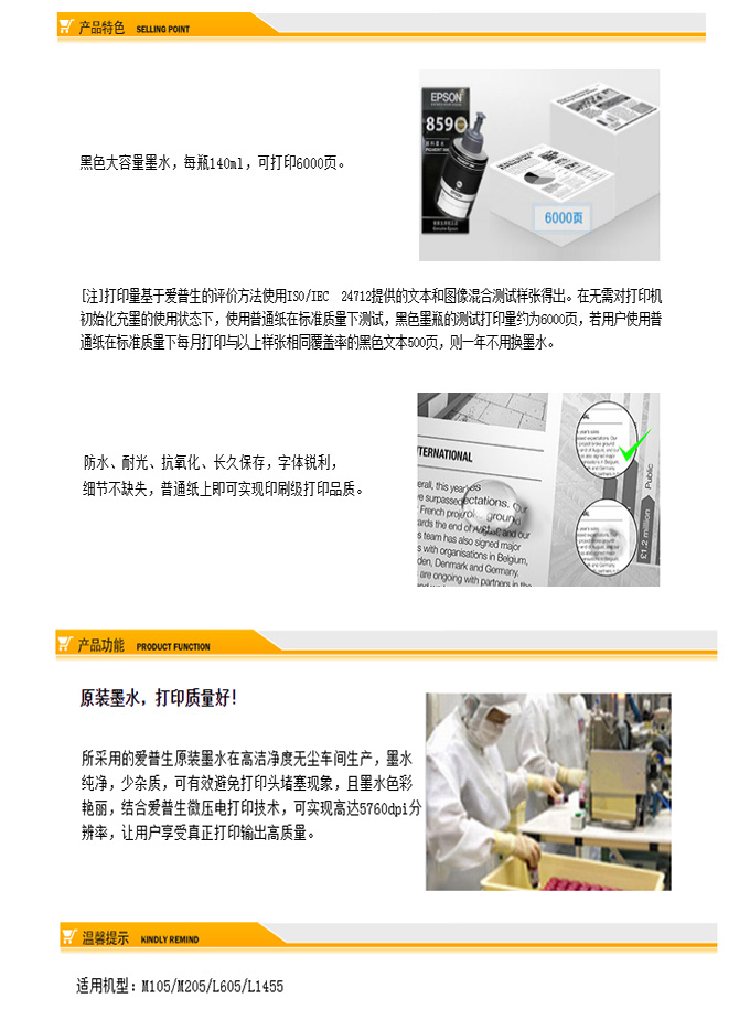 爱普生/EPSON T8591 黑色墨盒 (适用M105/M205/L605/L655/L1455)