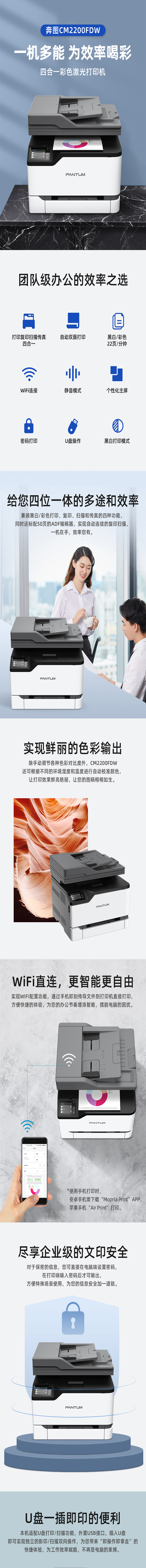 奔图/PANTUM CM2200FDW 彩色激光无线多功能一体机