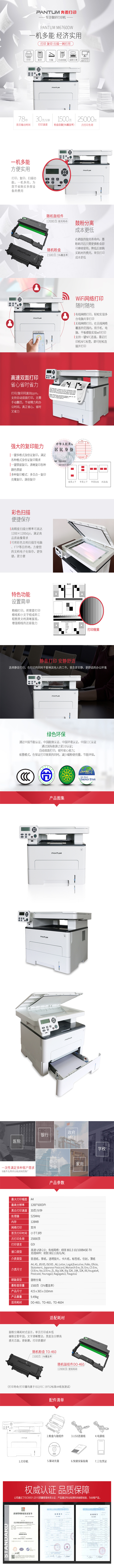 【奔图/Pantum M6700D 黑白激光多功能一体机 参数】