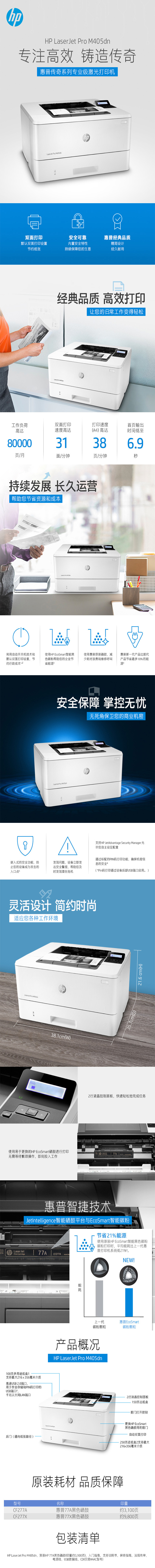 【惠普/HP M405D 黑白激光打印机 参数】
