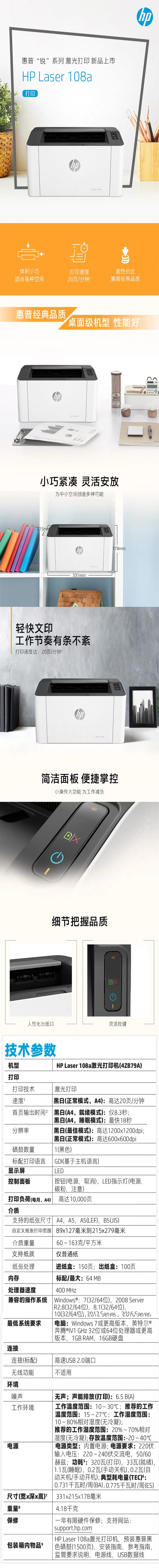 HP Laser 108a 参数】