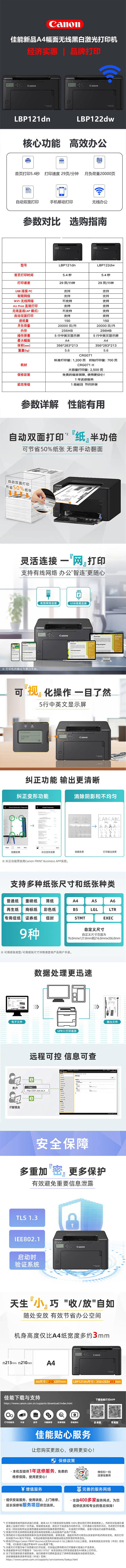 佳能(Canon)LBP121dn A4幅面黑白激光单功能打印机(快速打印/有线网络/自动双面/5行中英文显示屏家用 )