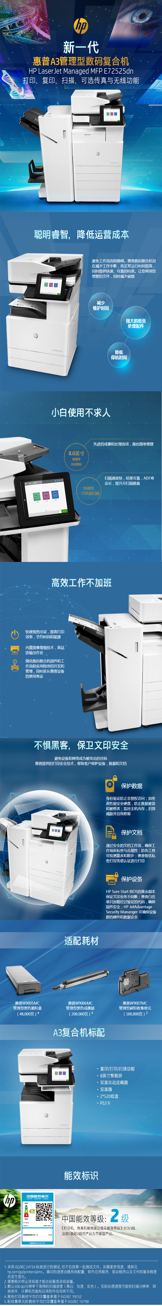 惠普/HP E72525dn 管理型复印机 黑白 打印、复印、扫描 25页