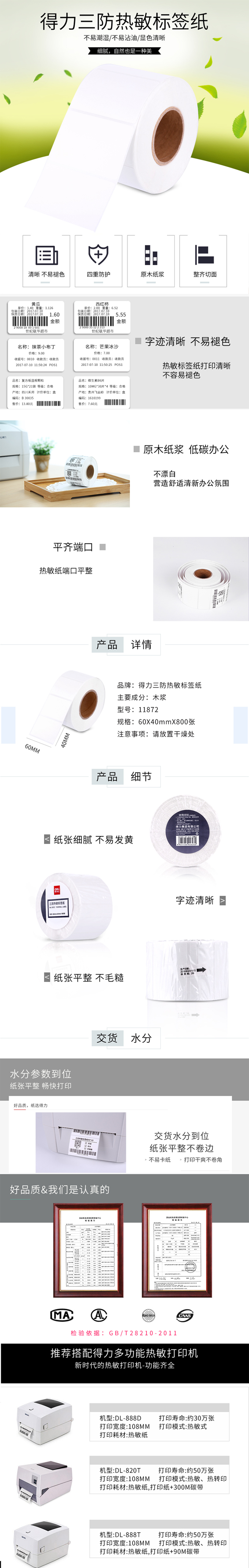得力11872三防热敏标签纸