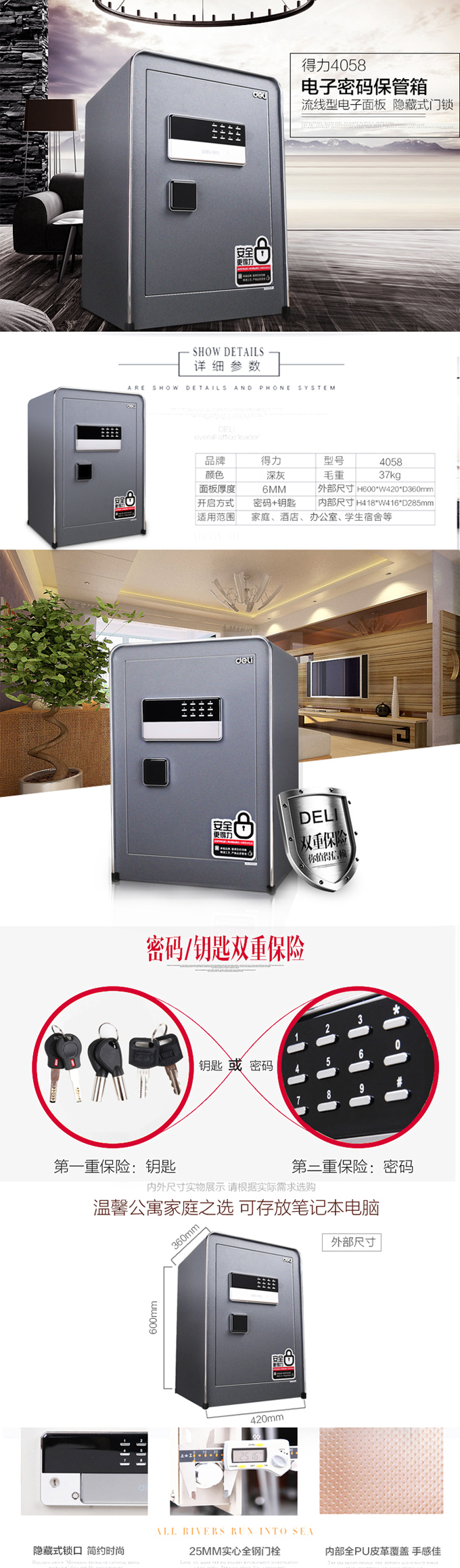 得力deli 4058电子密码保管箱(深灰)