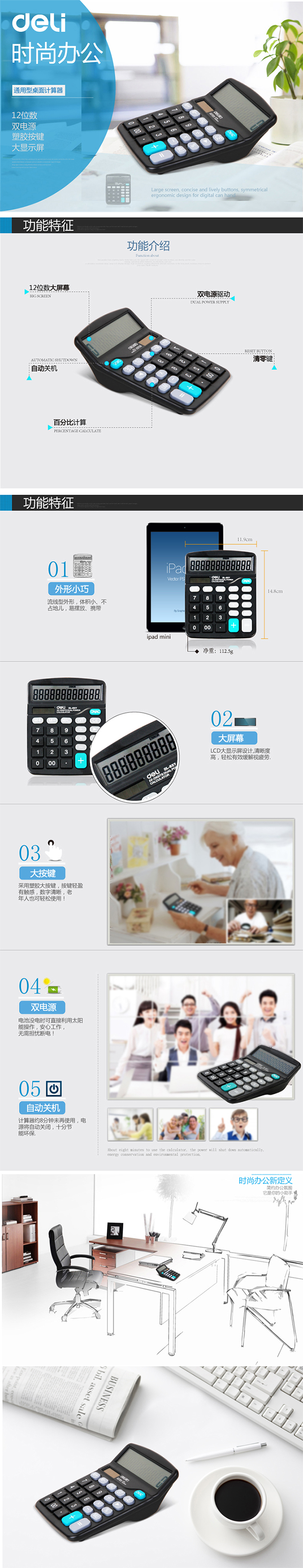 - 得力deli 1521A 12位双电源大屏幕桌面计算器 经典爆款