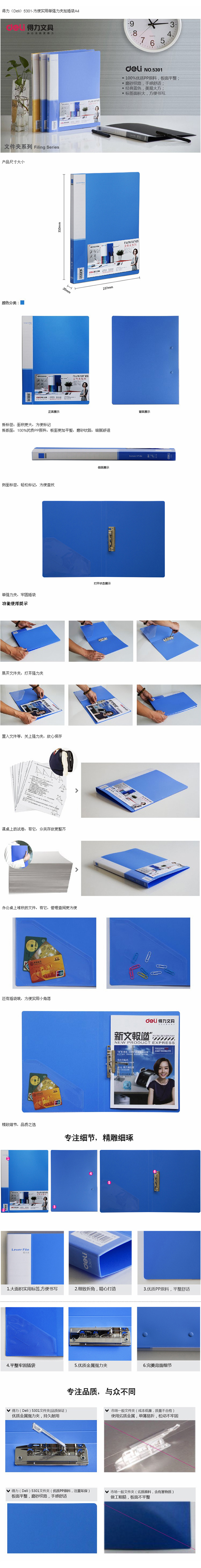 - 得力Deli 5376 单强力夹+插袋文件夹(ABA防滑设计)