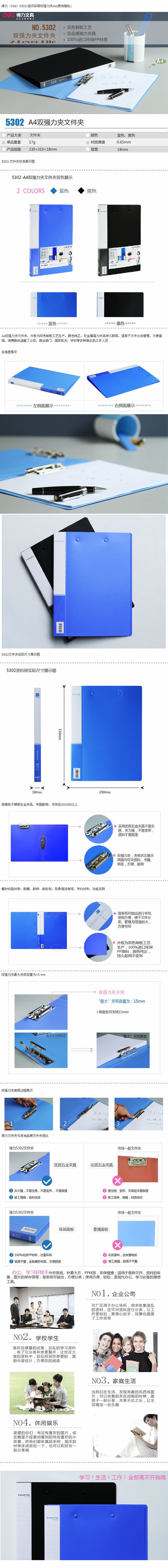 - 得力Deli 5342 A4双强力夹文件夹