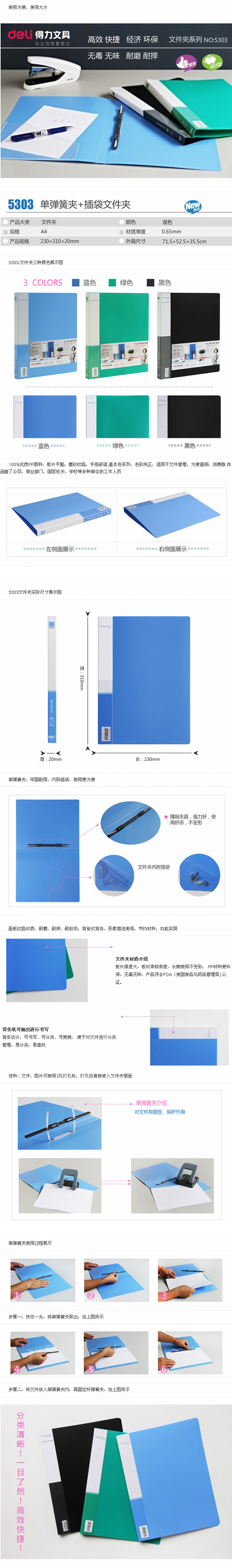 得力Deli 5303 A4弹簧夹加插袋文件夹