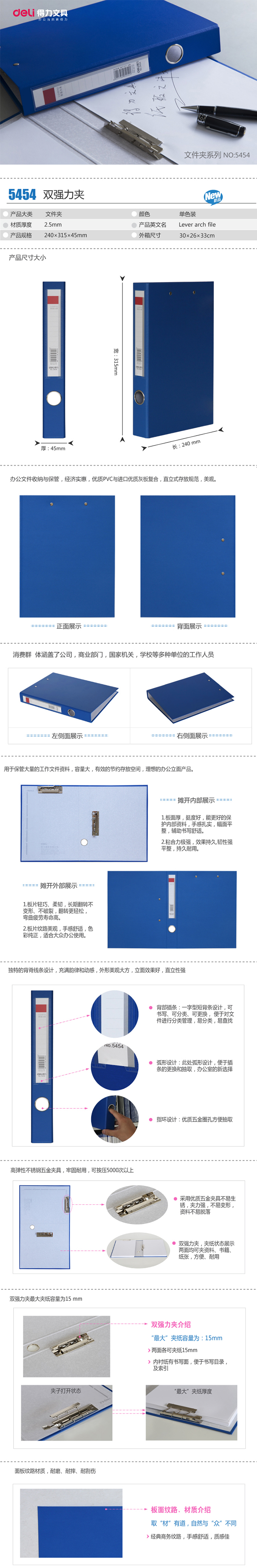- 得力Deli 5302 A4双强力夹文件夹/资料夹/整理夹