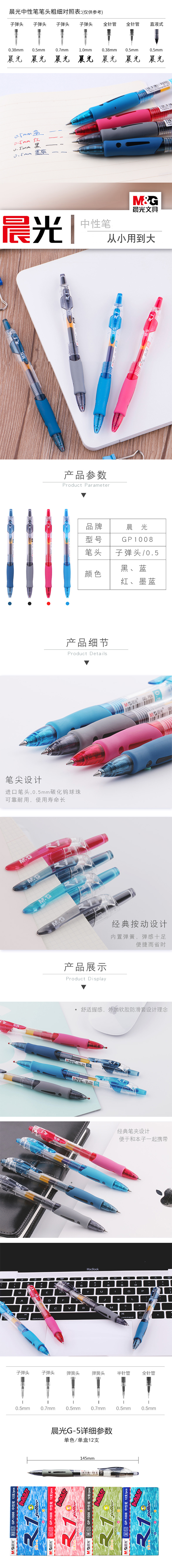 晨光GP-1008 按动型中性笔 按动式水笔 签字笔 新品 热卖