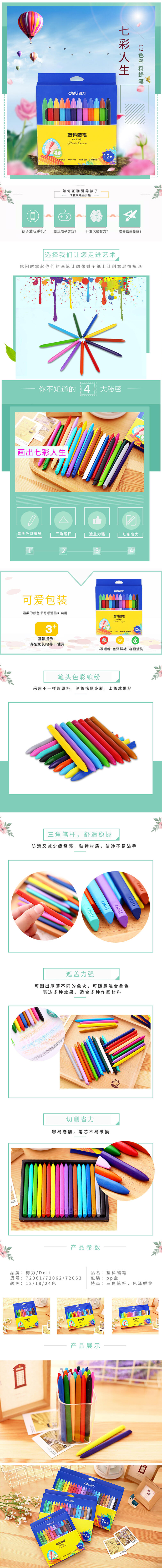 得力72061-12色塑料蜡笔【产品规格】15*13.5*1.2cm