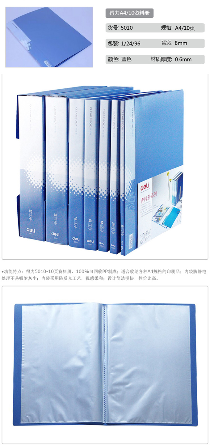 得力Deli 5010 10页资料册/插页夹/文件夹(无衬纸)A4