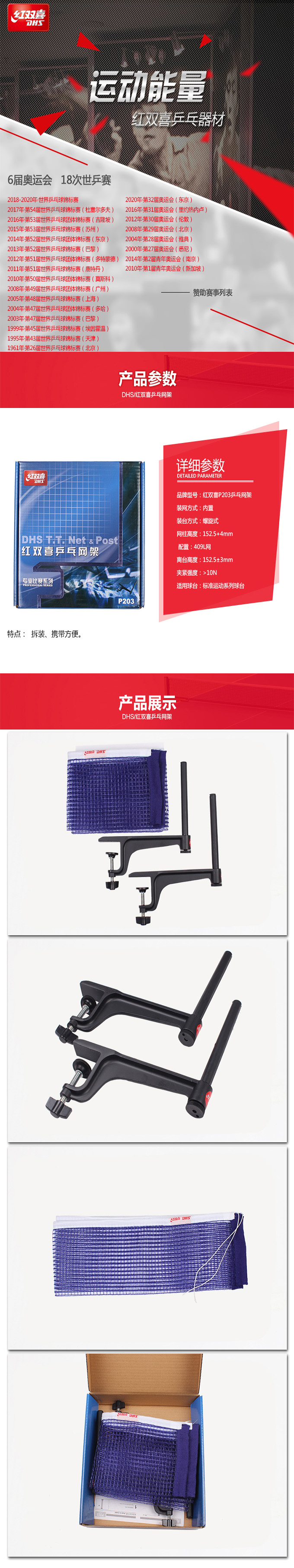 红双喜 乒乓球网架乒乓球桌网 P203