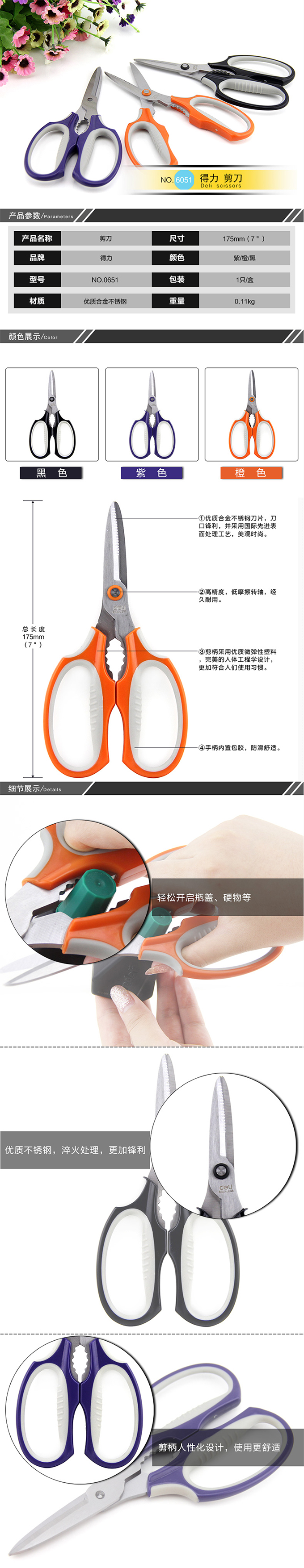 - 得力Deli 6027 合金不锈钢软质塑胶手柄剪刀