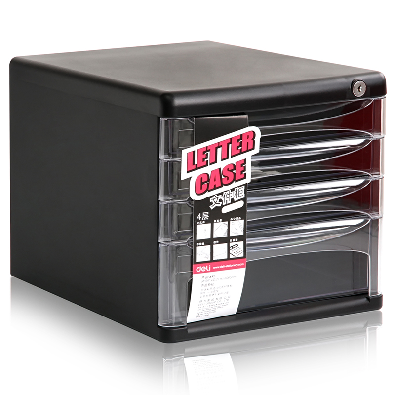 - 得力deli 9774 四层透明桌面文件柜/塑料抽屉文件柜(无锁)