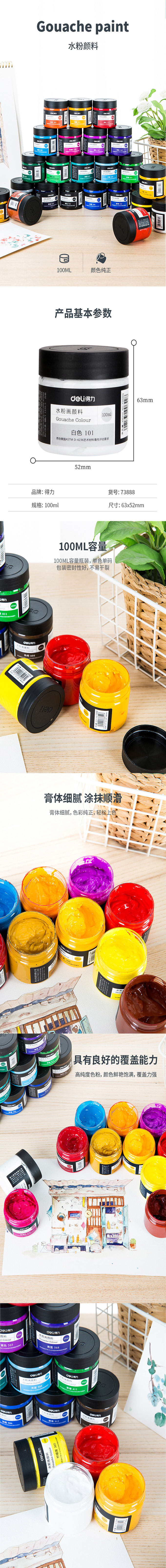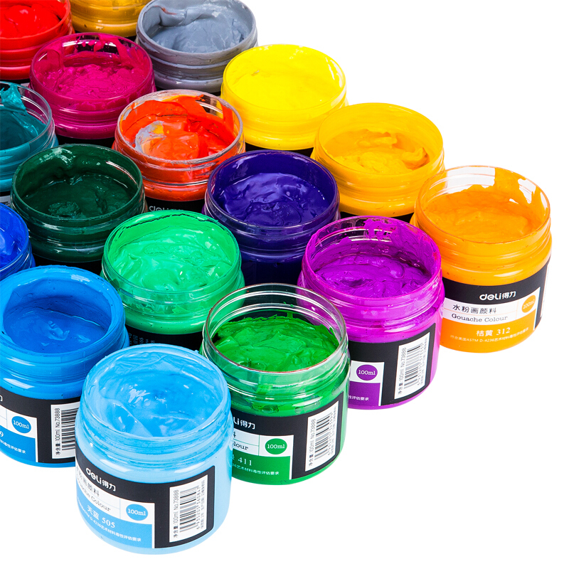 得力 73888水粉颜料 100ml大容量瓶装画画美术专用