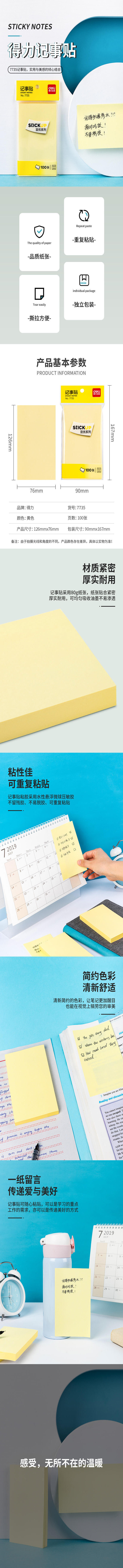 得力 7735 百事贴告示贴(黄)76*126mm(包)
