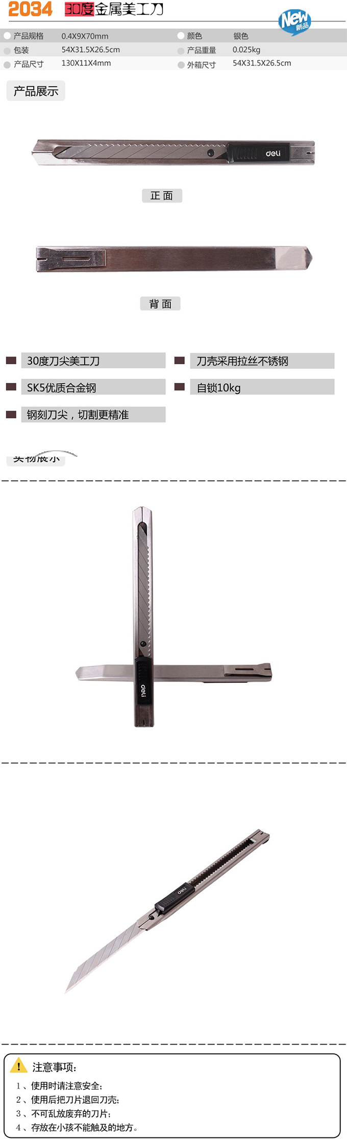 得力deli 2034 30°金属SK5优质合金钢裁小号美工刀