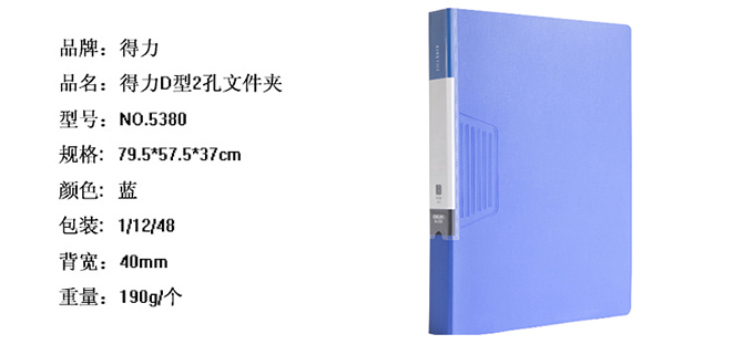- 得力Deli 5341 A4单强力夹+插袋文件夹