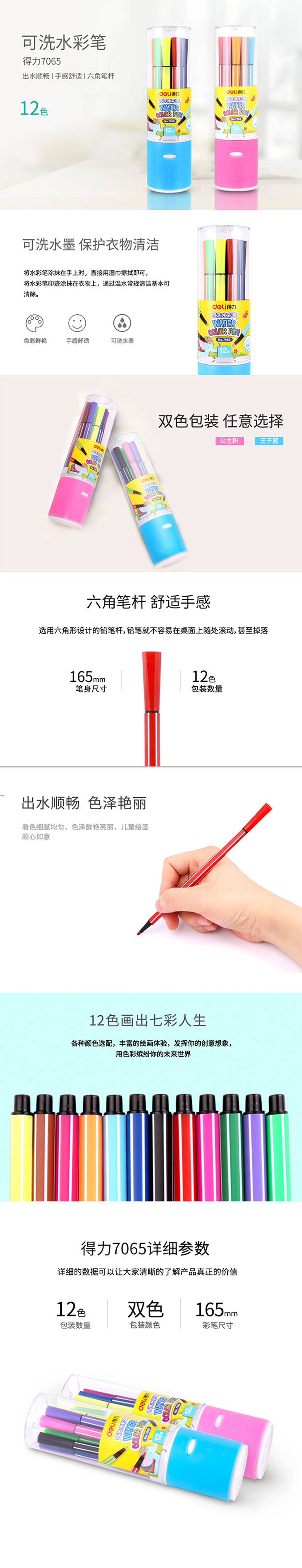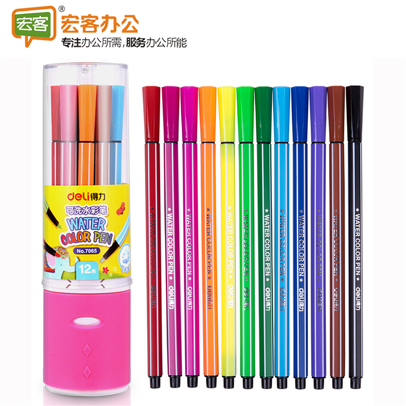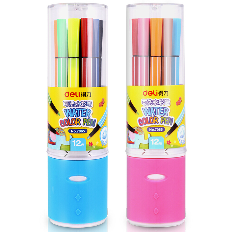 得力/Deli 7065 绚丽多彩可洗水彩笔/绘画笔 12色/筒