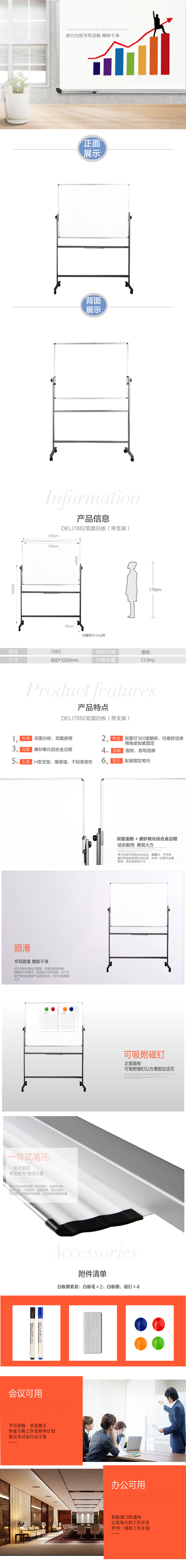 得力7882 双面白板(带支架) 120×90cm