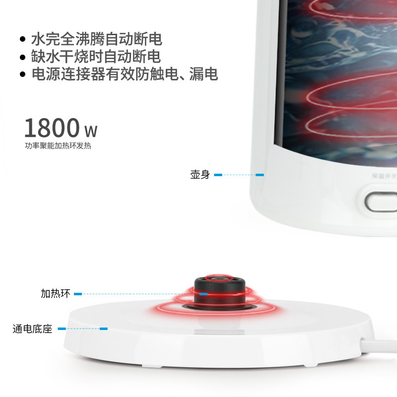 颜色分类: 1.7L白色 电热水壶材质: 不锈钢+ABS工程塑料
