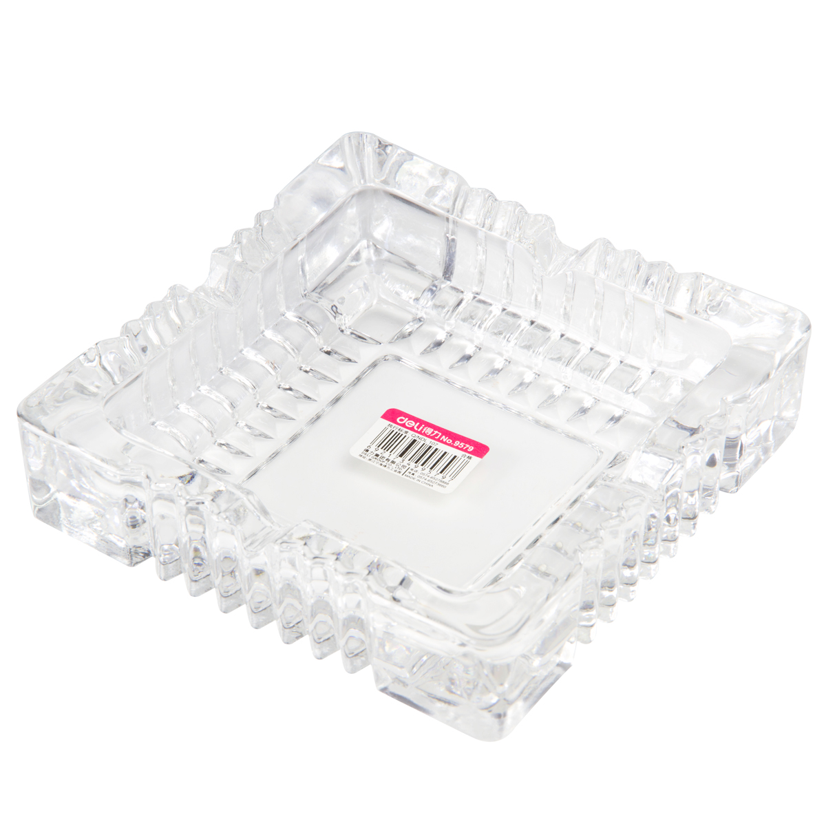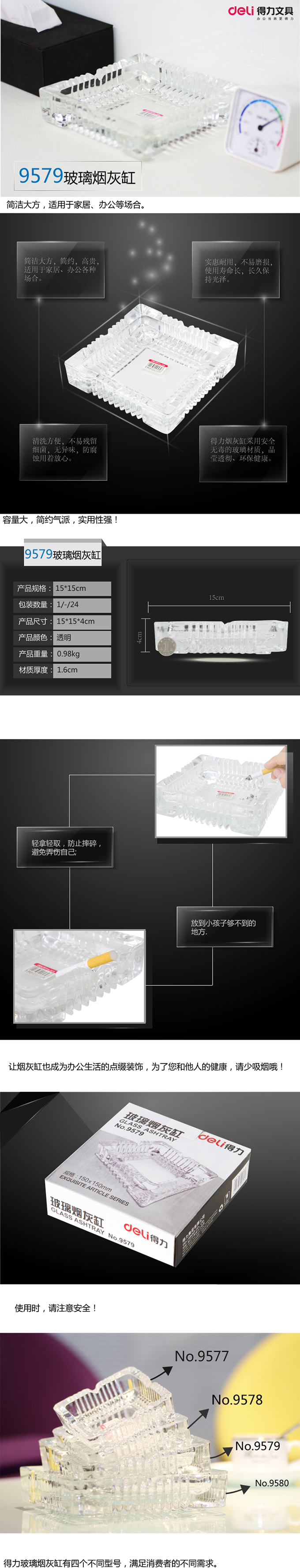 得力deli 9579 方型玻璃烟灰缸 150*150mm 茶几摆件