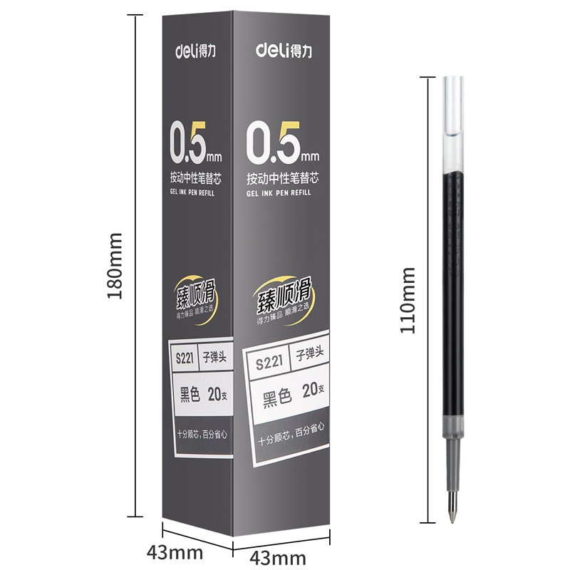得力 S221按动中性笔替芯0.5mm子弹头(黑)