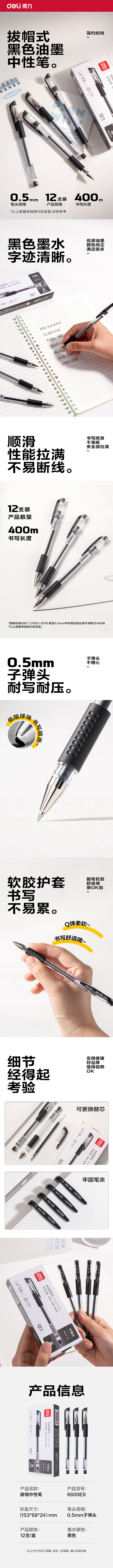 得力 6600ES中性笔0.5mm子弹头