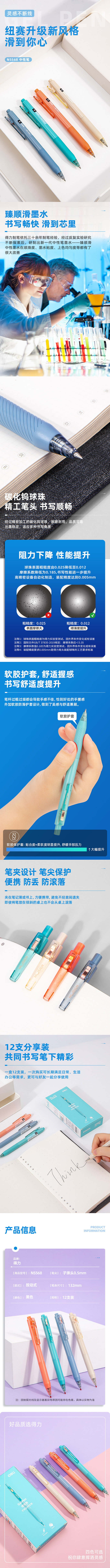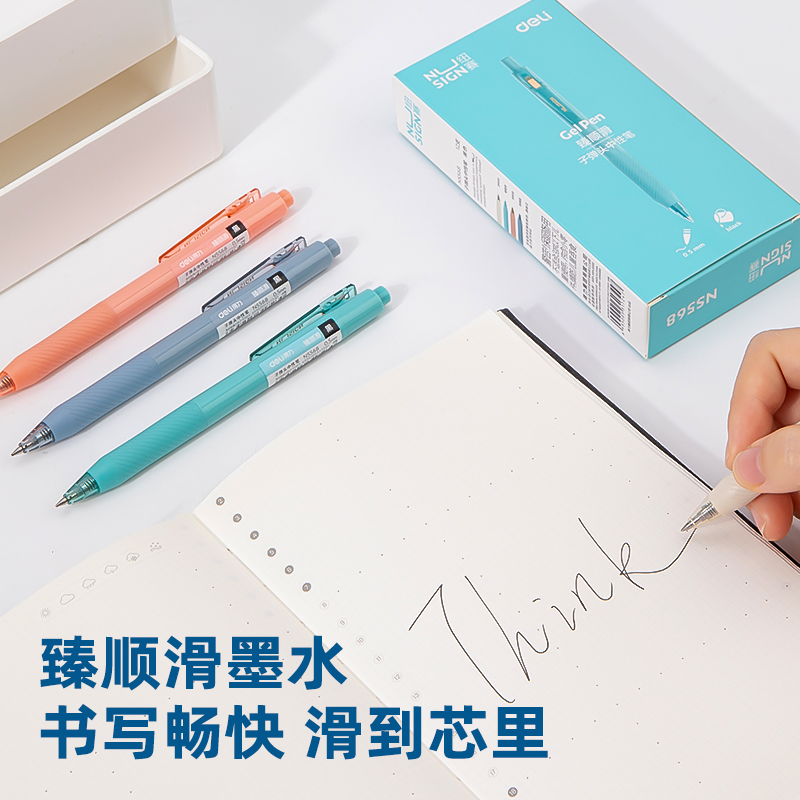 得力 NS568 纽赛臻顺滑按动学生中性笔0.5mm子弹头