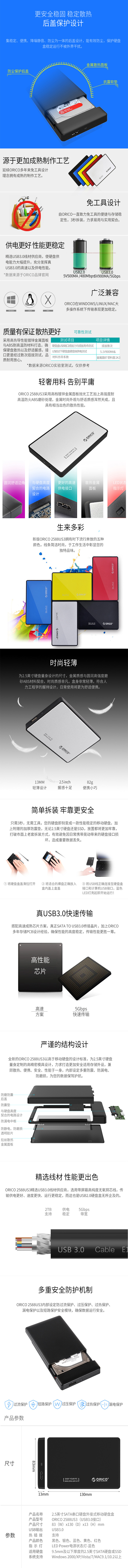 ORICO 2518S3 2.5寸高速移动硬盘盒2588 超稳定 黑色