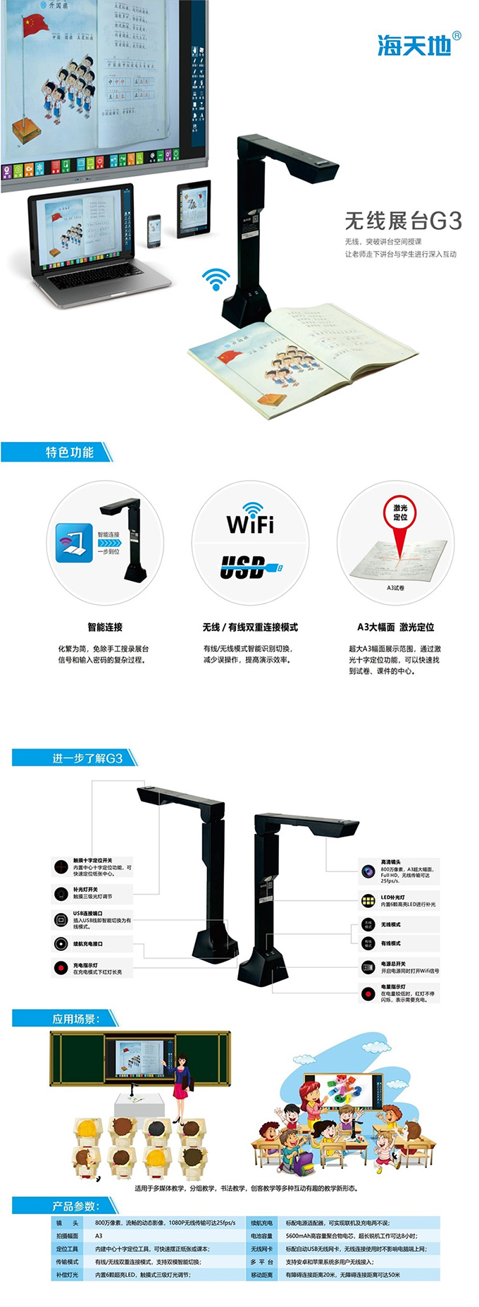 海天地/Soopen G3 高拍仪 高清壁挂式 800万像素 A3
