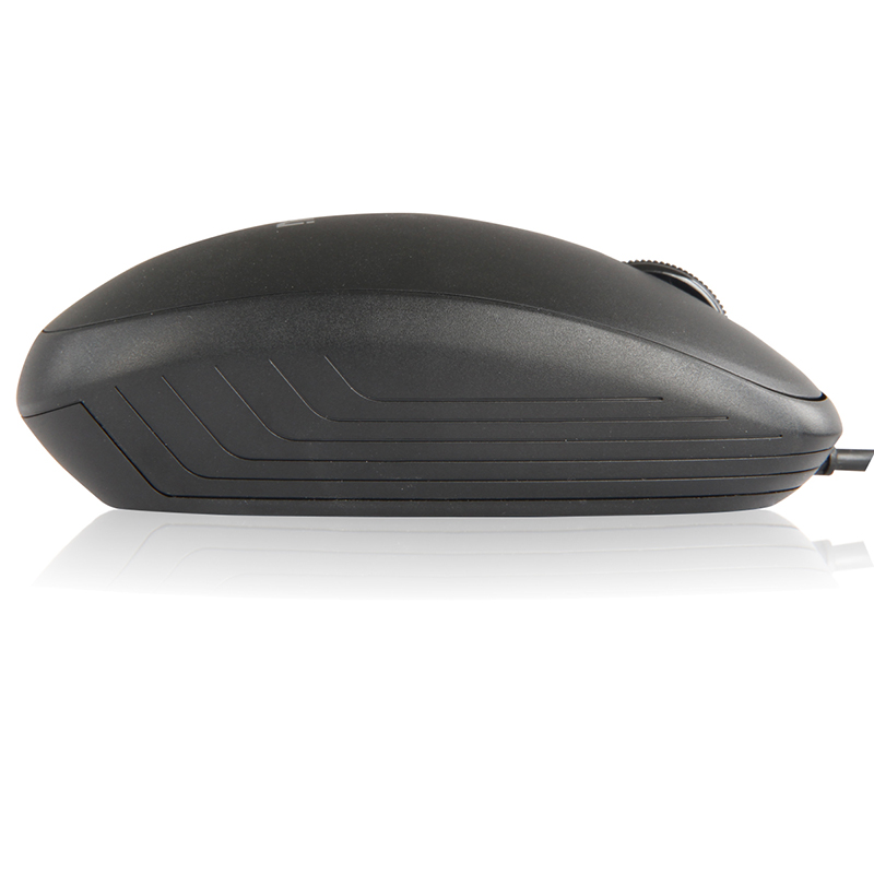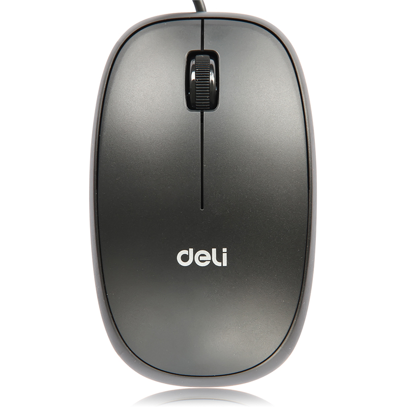 得力3715有线鼠标采用简单的3键设计,左右按键独立,滚轮大小适中,并且刻有横槽,可以有效防滑;