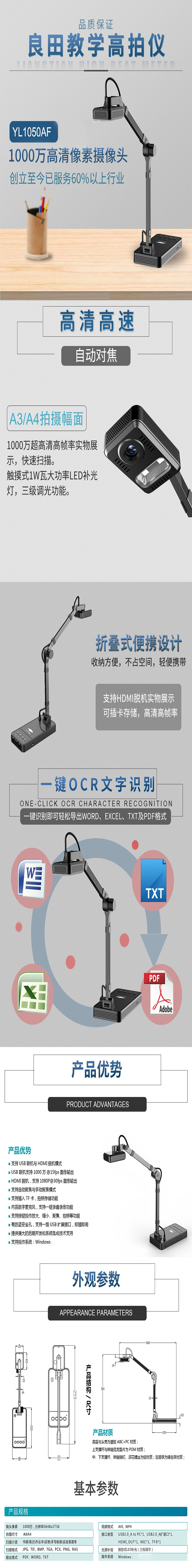 良田/Eloam YL1050AF 录课设备高拍仪 拍试卷拍作业教学扫描仪 1000万像素