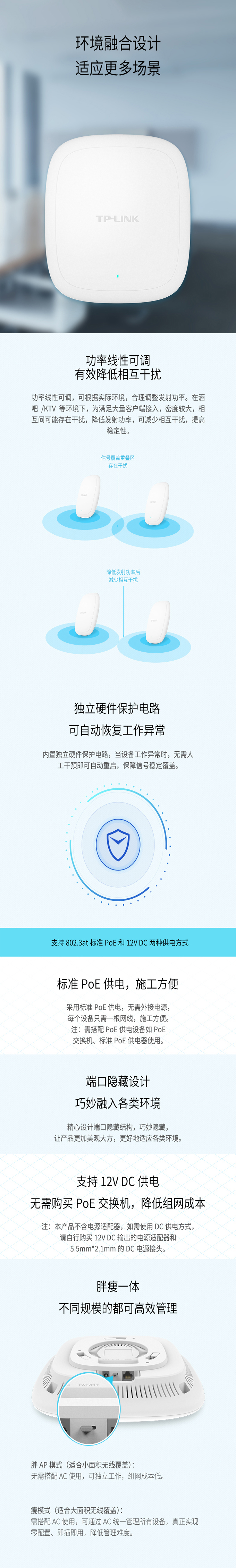 供电方式:POE/DC供电 适用面积:复式/别墅(120㎡ 以上)