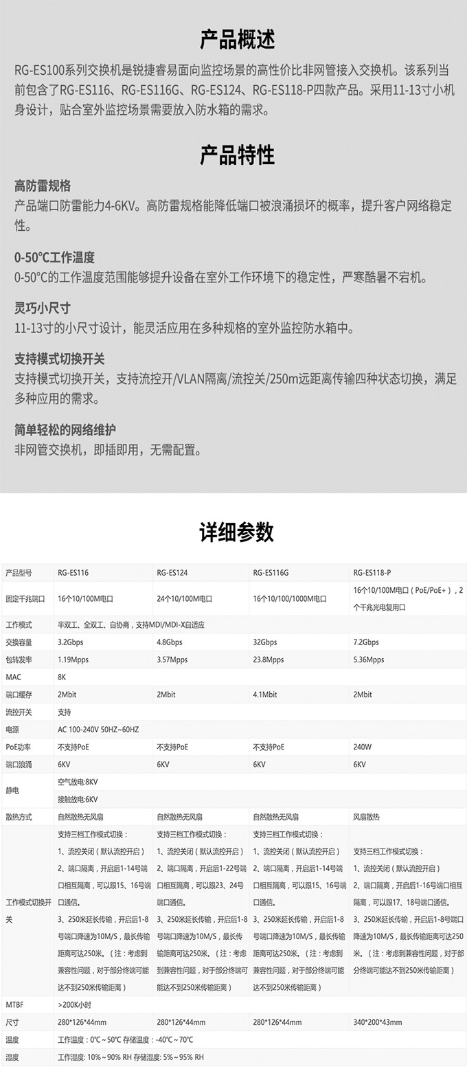锐捷/ruijie RG-ES116 16口百兆交换机 非网管网线分线器