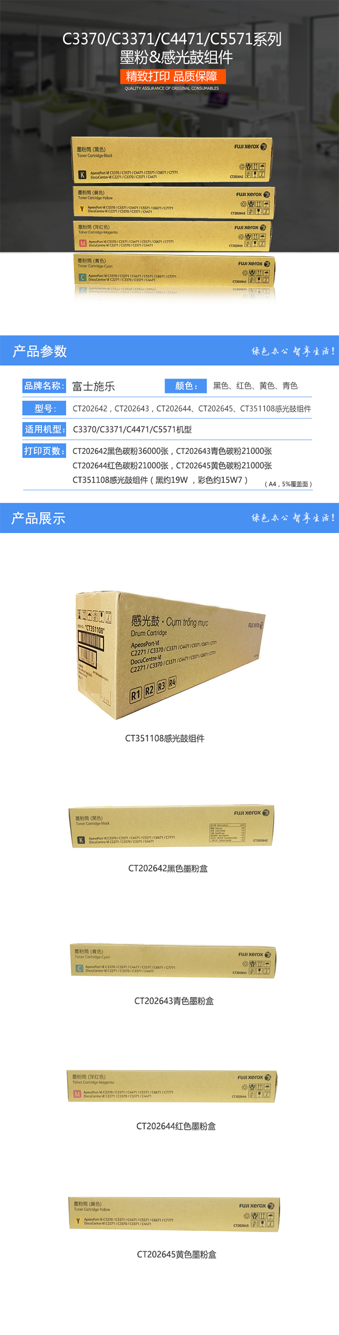 富士施乐 CT202642-CT202645 原装四色粉盒 适用C2271/3370/3371/4471/6671/C2273/3372