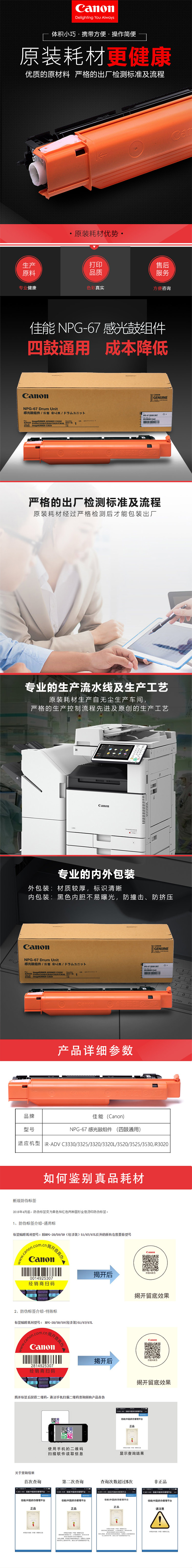 佳能(Canon)NPG-67 原装四色通用感光鼓组件(适用3320/3325)