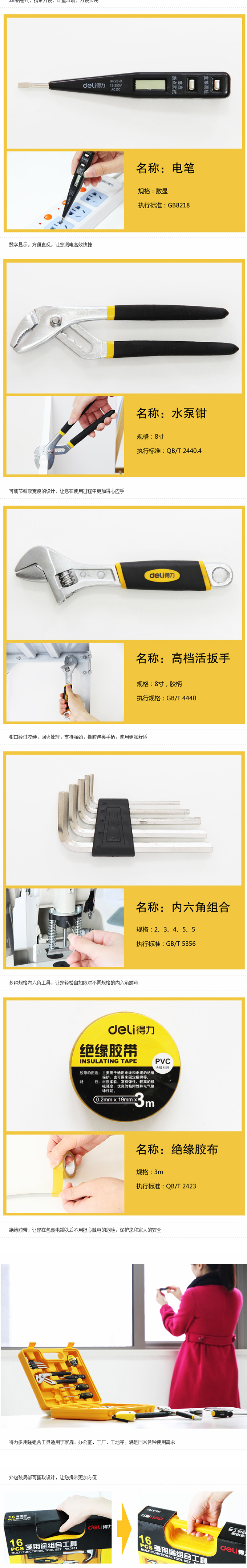 得力deli 3701 16件套多用途组合五金工具套装百宝箱
