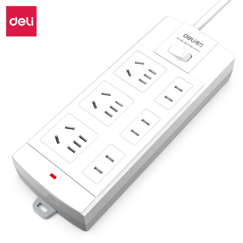 得力deli 18260 防触电插座/插板 全长2米/3米(6个三插)