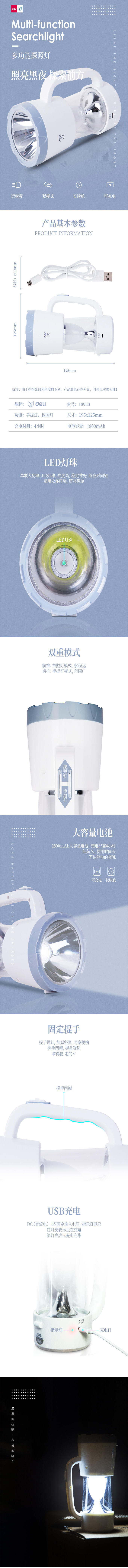 货号:18950 物料描述:得力18950多功能探照灯(白)20.2*10*12.2cm 1800mAh
