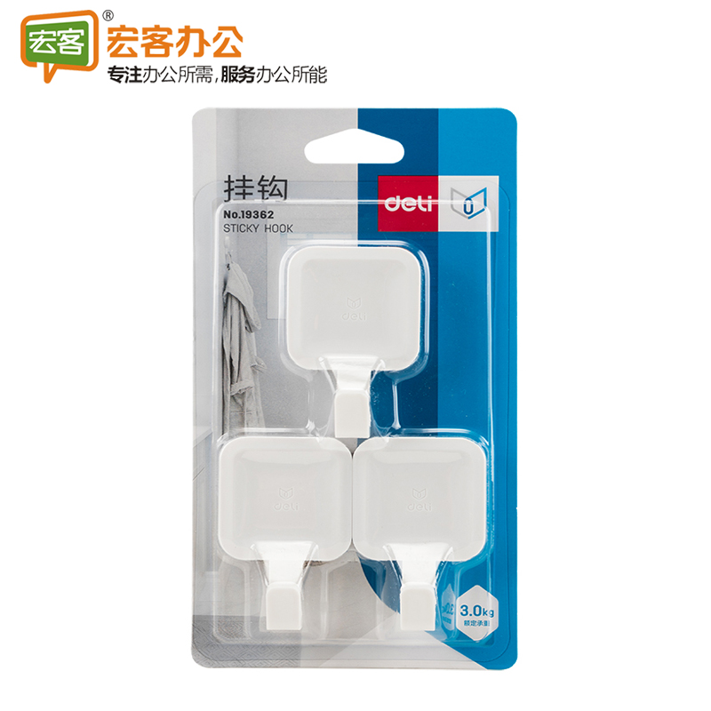 得力/Deli 19362挂钩(3kg)(方形)(白色)(3只/卡)