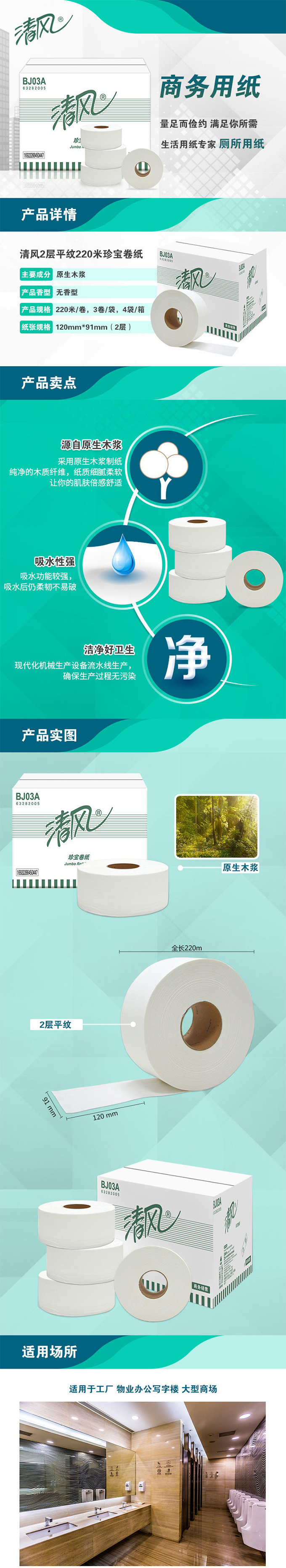 清风 BJ03A 新款2层超长优质大卷纸/珍宝卷纸 220米/卷(12卷)