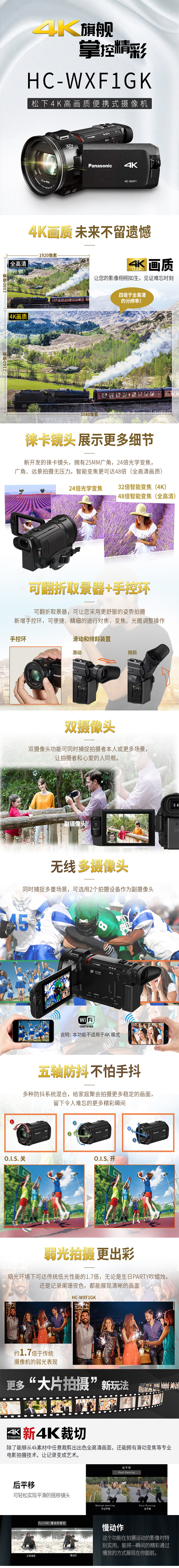 松下/Panasonic HC-WXF1 家用/直播4K高清数码摄像机 /DV/摄影机/录像机 五轴防抖、光学24倍变焦、双摄像头