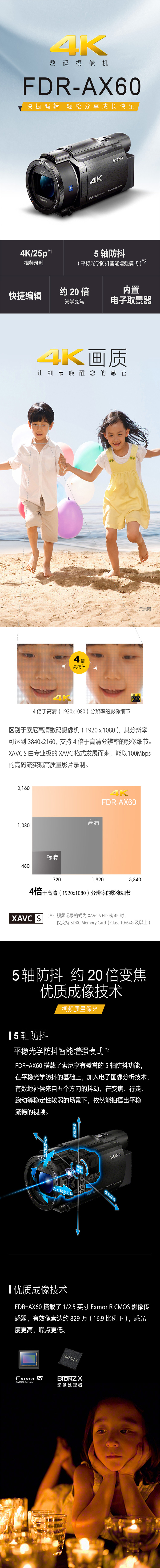 索尼(SONY)FDR-AX60 4K高清数码摄像机 DV/摄影/录像 5轴防抖