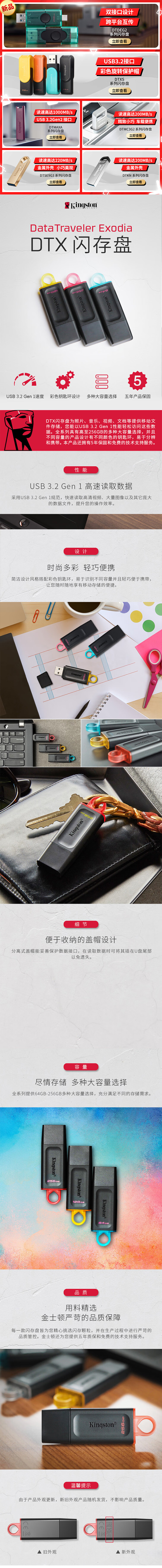 金士顿 DTX系列 U盘 可选容量USB3.2 Gen 1(售后服务升级)